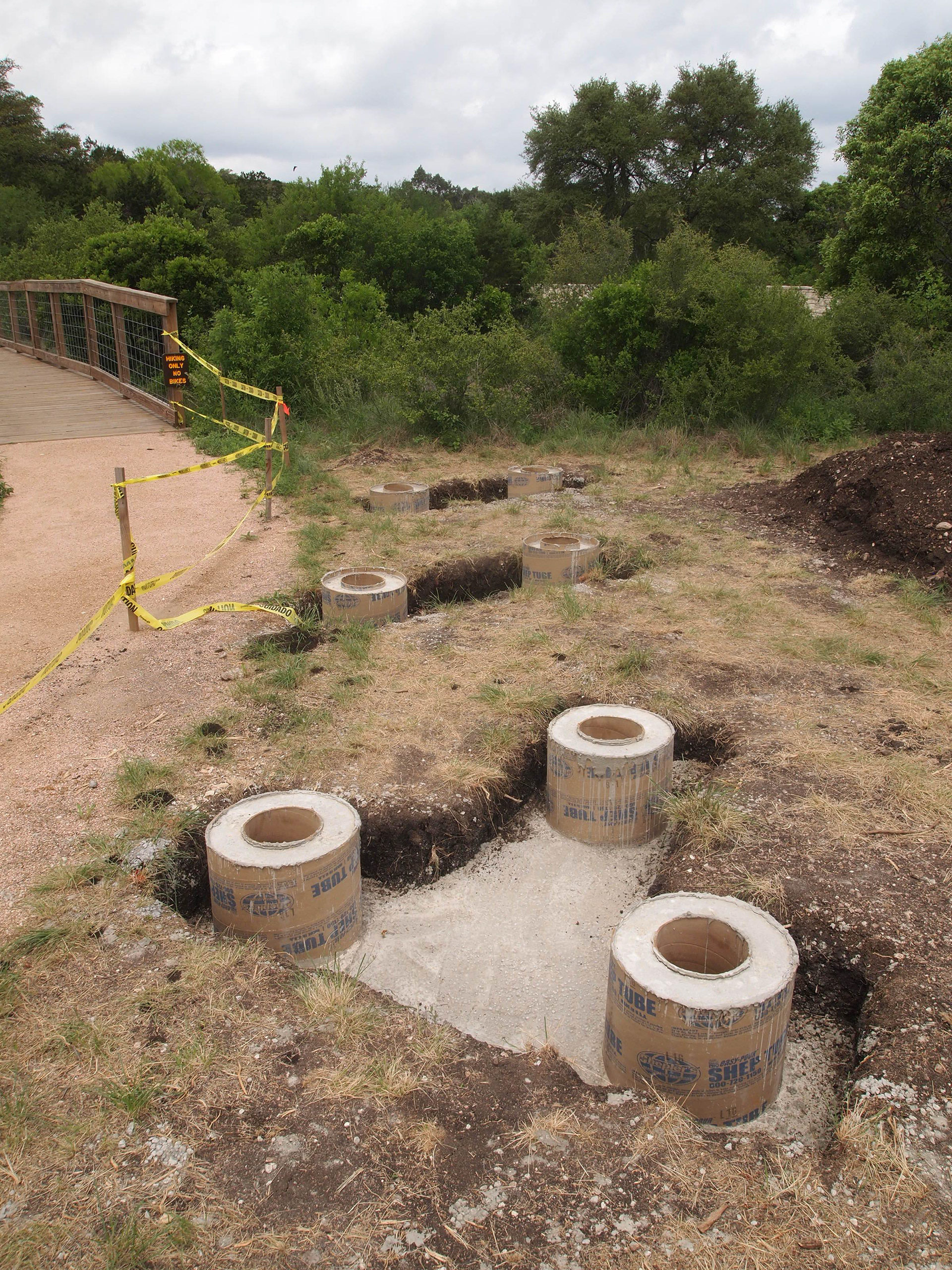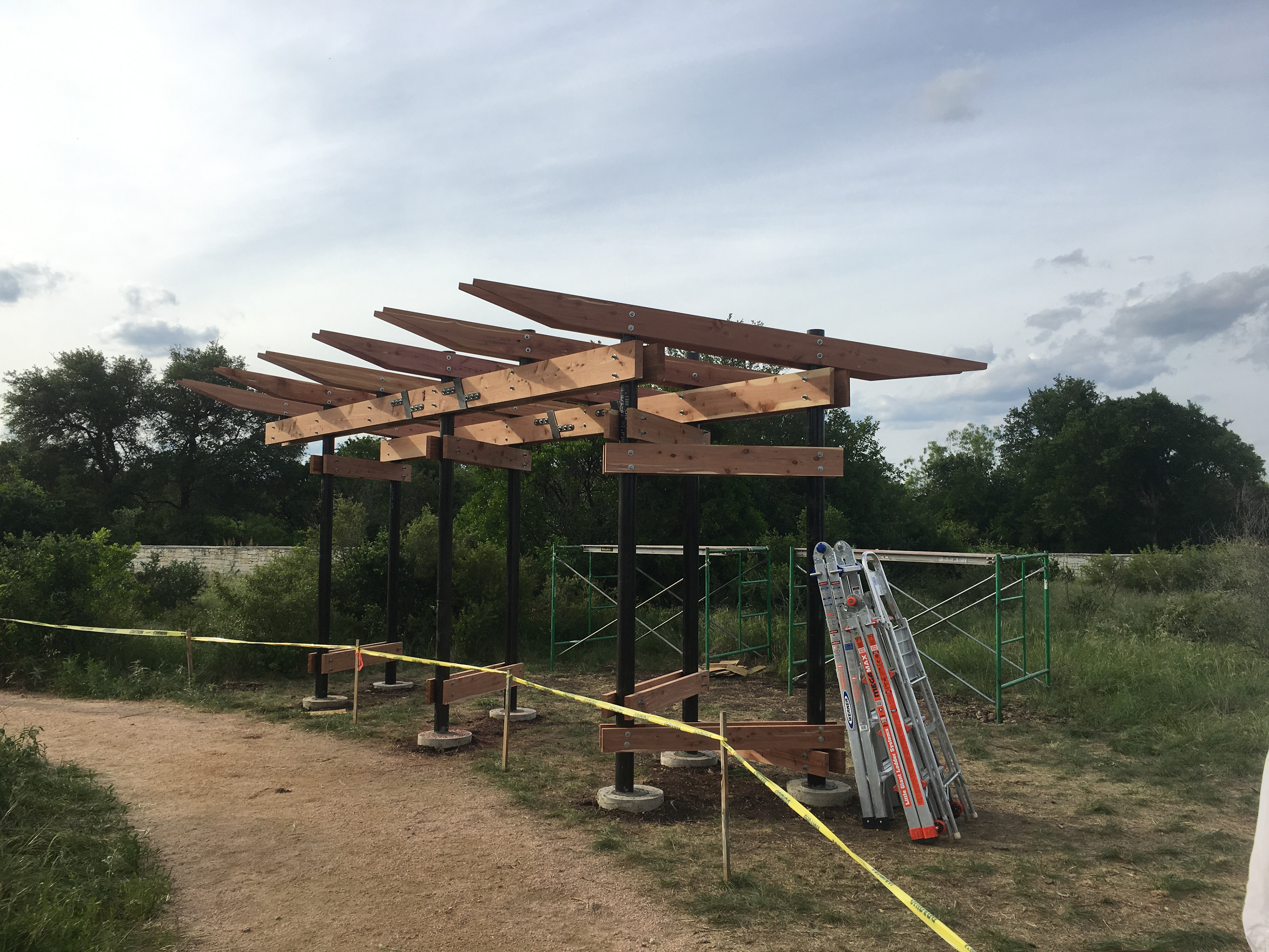 Completed trailhead structure before maps boards are attached.
