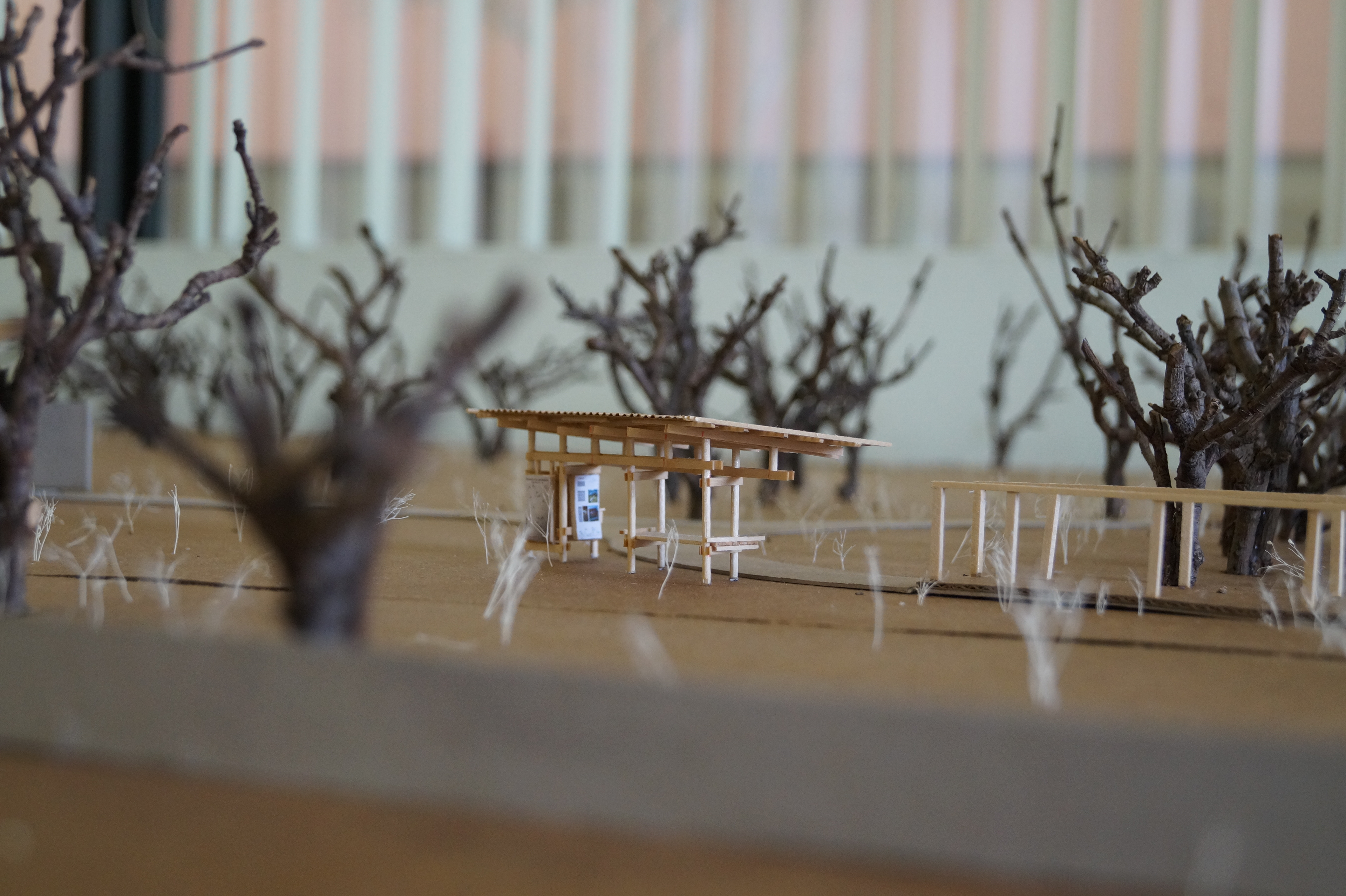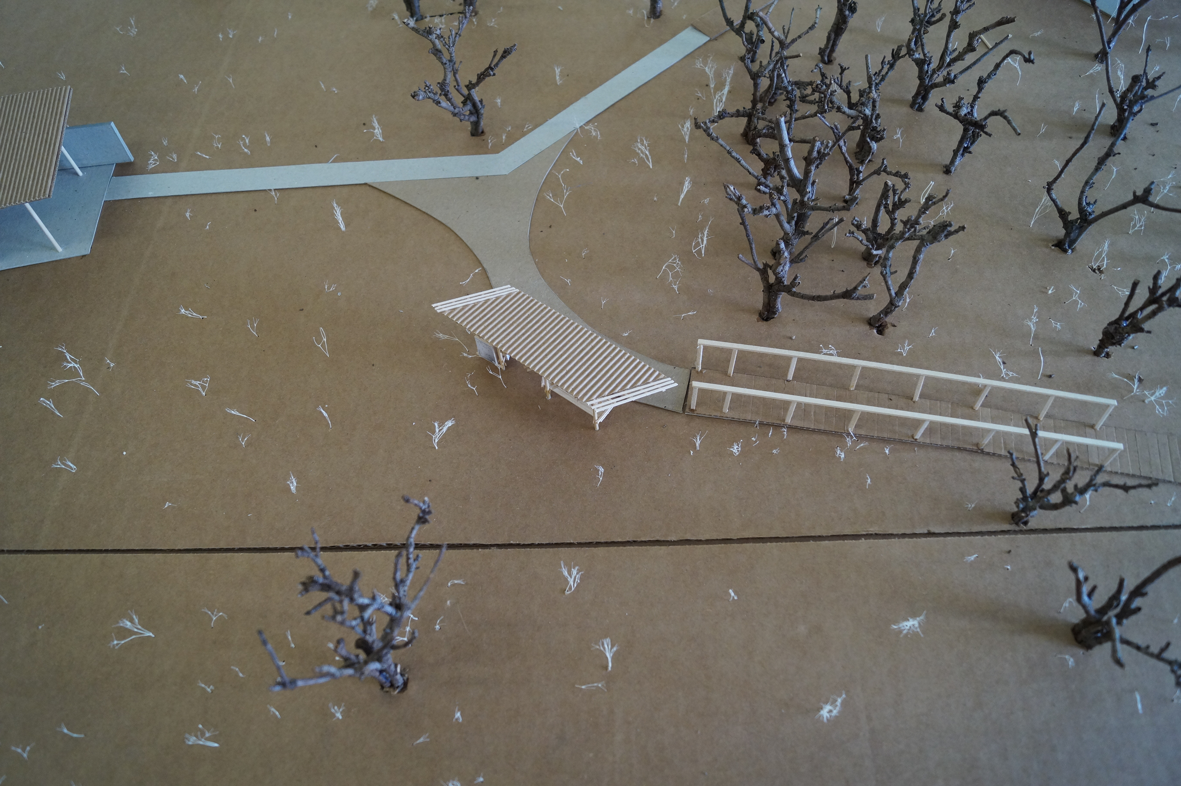 The material selection drew from the exposed steel pipe and weathered wood of the existent buildings.